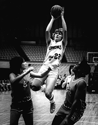 Drafted by the Iowa Cornets of the WBL in 1978, Uhl made the first women’s All-Star Team and played at Madison Square Garden. She also starred in a film about women’s professional basketball with Pete Maravich called “Dribble”.
